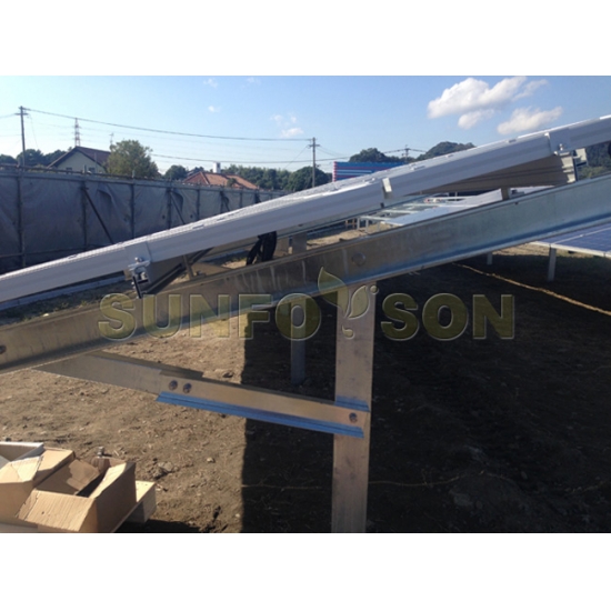 阳光支架-地面打桩式支架系统用于大型商用和民用光伏电站,适用于非石质土壤,有框和无框太阳能板都适用。用打桩机将该系统C型钢柱快速打入地面1-2,而后直接将铝合金支撑结构,加大型导轨和压块组装成支架系统。简化您的安装和确保结构的安全性。